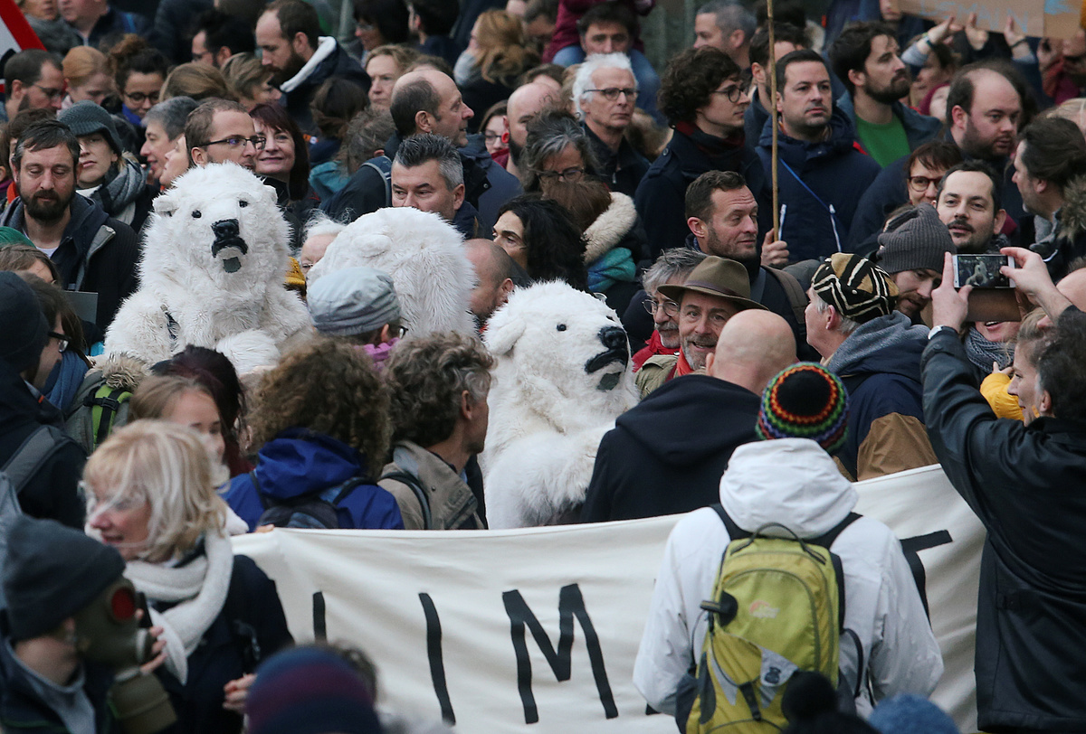 BRUSSELS (Reuters) - Tens of thousands of people marched peacefully on Sunday in Brussels urging governments to respect commitments on countering climate change as a United Nations conference on keeping global warming in check opened in Poland.