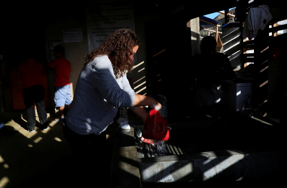 FILE PHOTO: Migrant from Venezuela, Ana Maria Rincon, washes clothes inside a shelter after she and her children were sent by the Customs and Border Protection (CBP) to Mexico from the U.S. under the Migrant Protection Protocols (MPP), in Tijuana, Mexico, July 20, 2019. "I don't have many options, I have to wait for my appointment at the court, I didn't ask for asylum but that was the only option they gave me. I can't return to Venezuela, it's too dangerous," Rincon said. "If I have to wait, I will wait, if I have to stay in Mexico, I will stay. I really want to go to the U.S. as my older son lives there. I want to reunite with him, he is the head of the family." REUTERS/Carlos Jasso