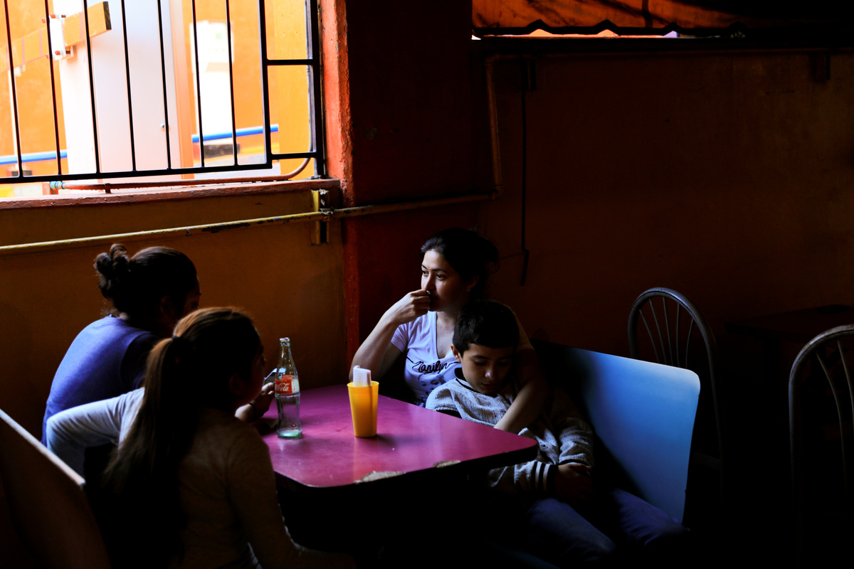 FILE PHOTO: Migrant from Honduras, Patricia Acosta, 36, embraces her son Adalberto Acosta, 13, as they finish eating at a restaurant after they were sent by the Customs and Border Protection (CBP) to Mexico from the U.S. under the Migrant Protection Protocols (MPP), in Tijuana, Mexico, July 21, 2019. Acosta's husband and her youngest daughter managed to stay in the United States. "It was a family dream to cross and stay in the U.S. so my kids could escape violence back in Honduras and get a better education," Acosta said. "Now, I'm separated from the rest of my family and I'm stuck in a country that I don't know anyone... In the cooler (detention center) they treated us very cruelly, we didn't have a place to go to the toilet.. the verbal insults we received from the officers were horrendous." REUTERS/Carlos Jasso