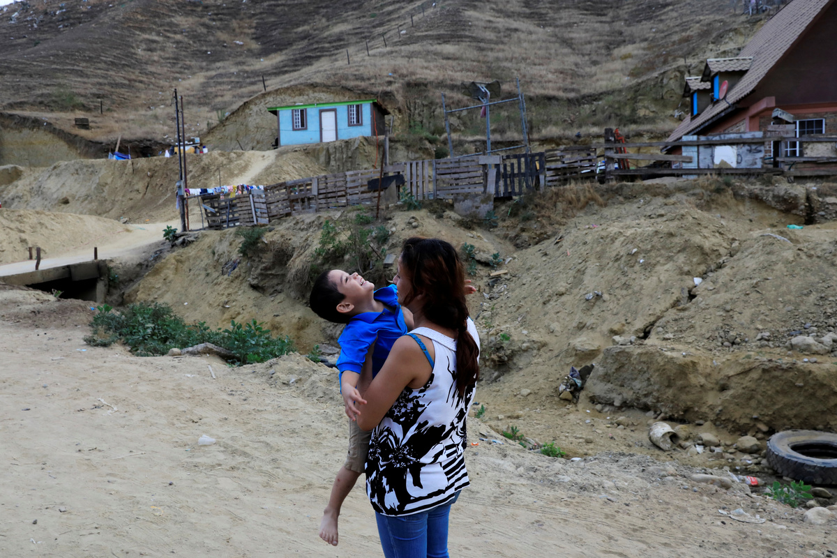 FILE PHOTO: Migrant from Honduras, Dunia Ayala, carries one of her children outside a shelter after she was sent by the Customs and Border Protection (CBP) to Mexico from the U.S. under the Migrant Protection Protocols (MPP), in Tijuana, Mexico, July 21, 2019. "I crossed to the U.S. with my family, we gave ourselves up to the border patrol, then they took us to a place where it was very cold, they took all our belongings, jackets, shoelaces, everything, then started to question us. We feel very intimidated by them. My husband said to them, 'We didn't have the fortune to be born in a country like yours, we just want a better future for our kids.' Anyway they forced us to sign a paper of the MPP. Now, we have an appointment, but after the way they treated us, we are going back to Honduras." REUTERS/Carlos Jasso