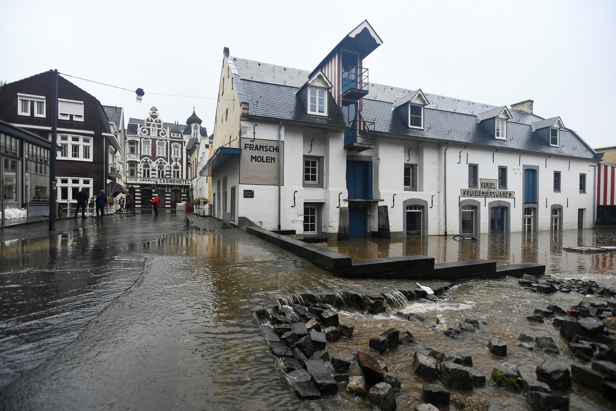 In Valkenburg, in the far south of Limburg, close to the Belgian and German border, floods had already engulfed the town centre, forcing the evacuation of several nursing homes and destroying at least one bridge.