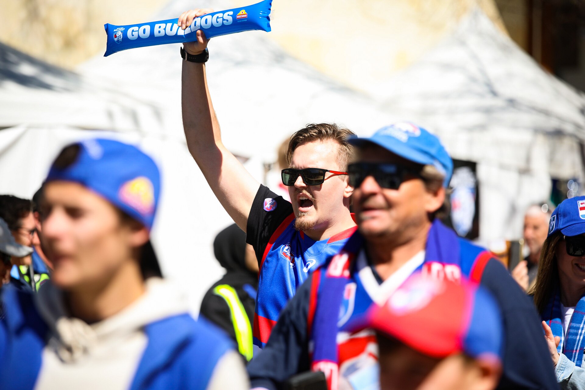 They were followed closely by Bulldogs fans marching to the City of Perth band playing Sons of the West.