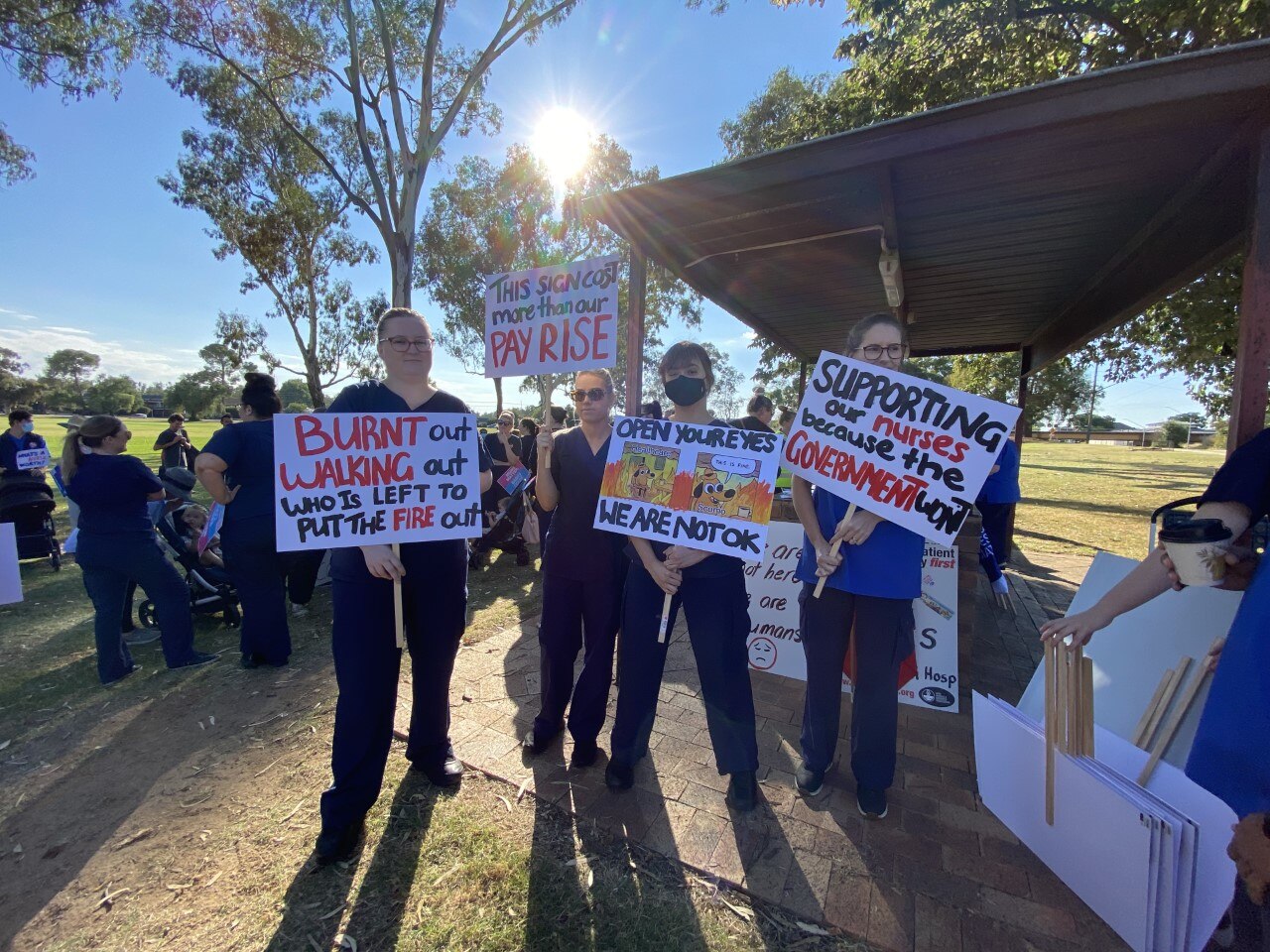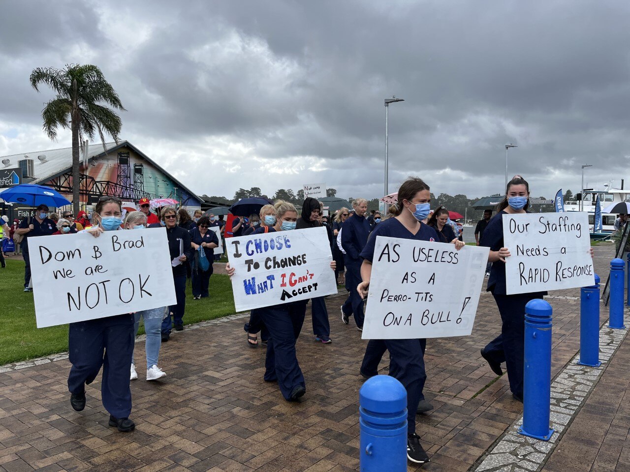 Nurses and midwives marching in the town centre of Batemans Bay told stories of nurses coming to work “crying” due to the immense pressure on staff.
