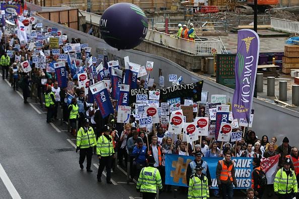 Thousands of student nurses, midwives, and allied health professionals have marched on the streets of London, Manchester, and Newcastle to highlight how they will be paying off their student loans almost until the day they retire following government plans to axe NHS bursaries.