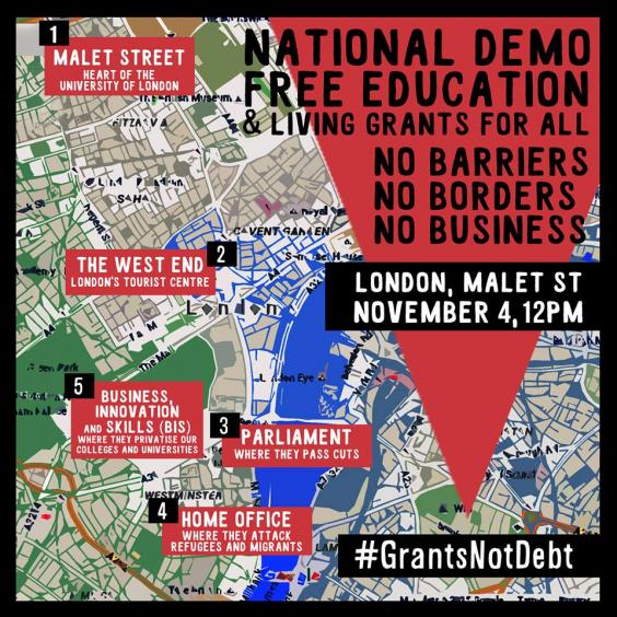 Organised by the National Campaign Against Fees and Cuts (NCAFC), the group said protesters will march under the slogan ‘FREE EDUCATION - NO BARRIERS, NO BORDERS, NO BUSINESS’ after the Government recently announced plans to abolish maintenance grants, instead, turning them into loans.