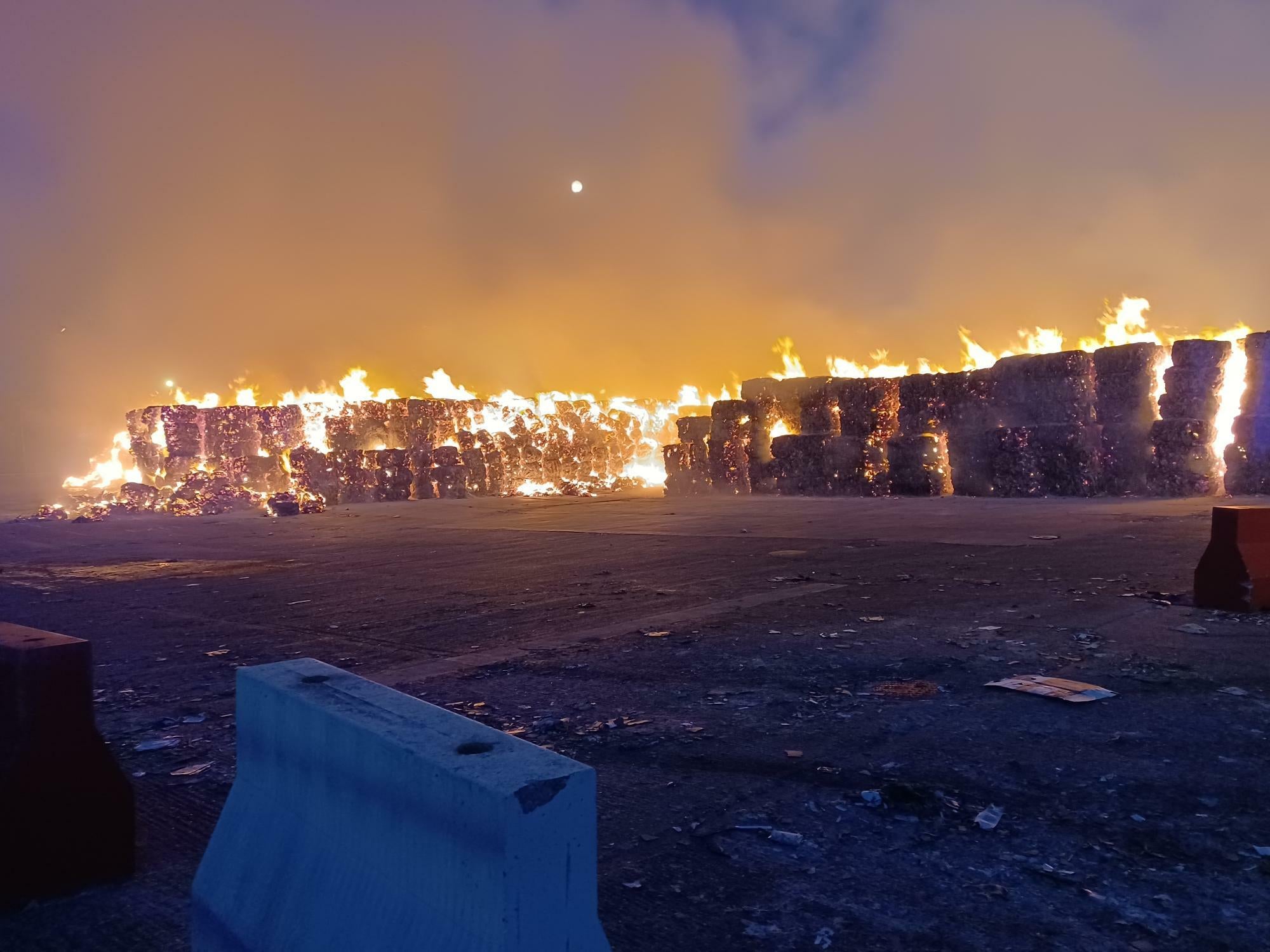 About 8,000 tons of paper and cardboard have gone up in flames at a recycling plant.