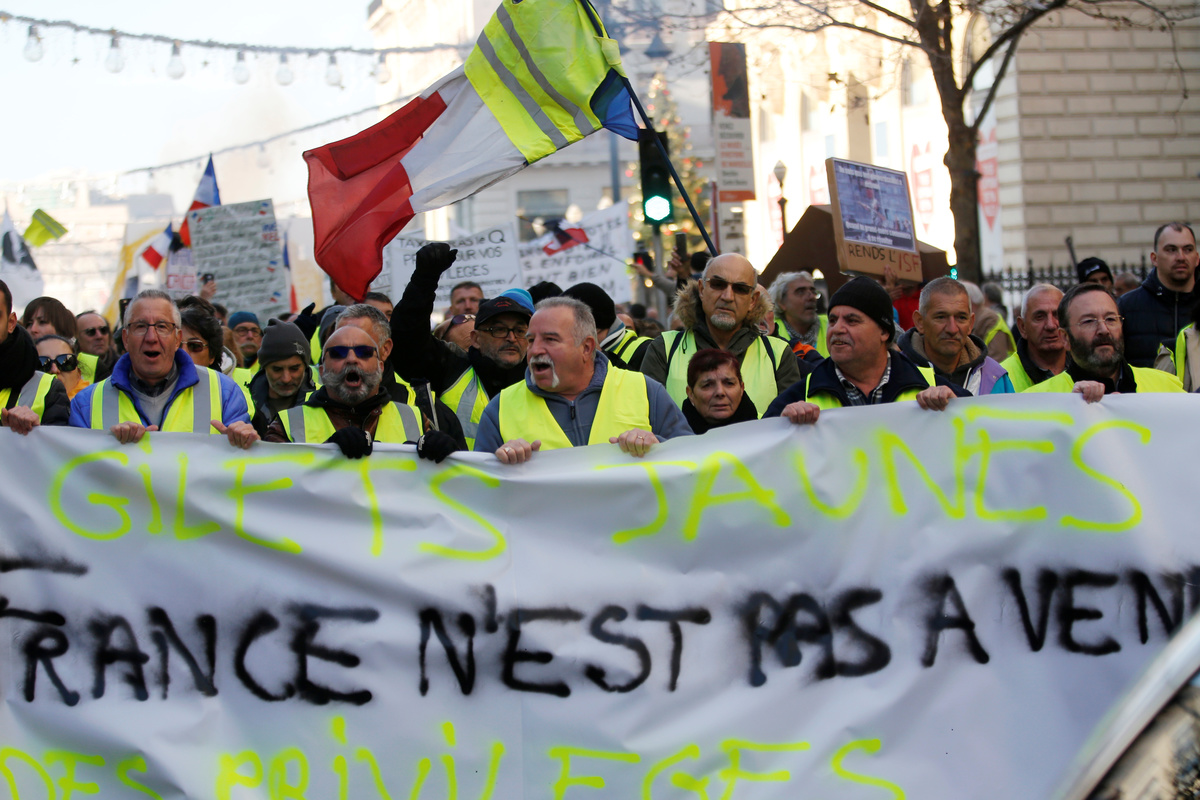 The 'yellow vest' movement started in mid-November with protests at junctions and roundabouts against fuel tax increases, but quickly became a wider mobilisation against Macron's economic policies.