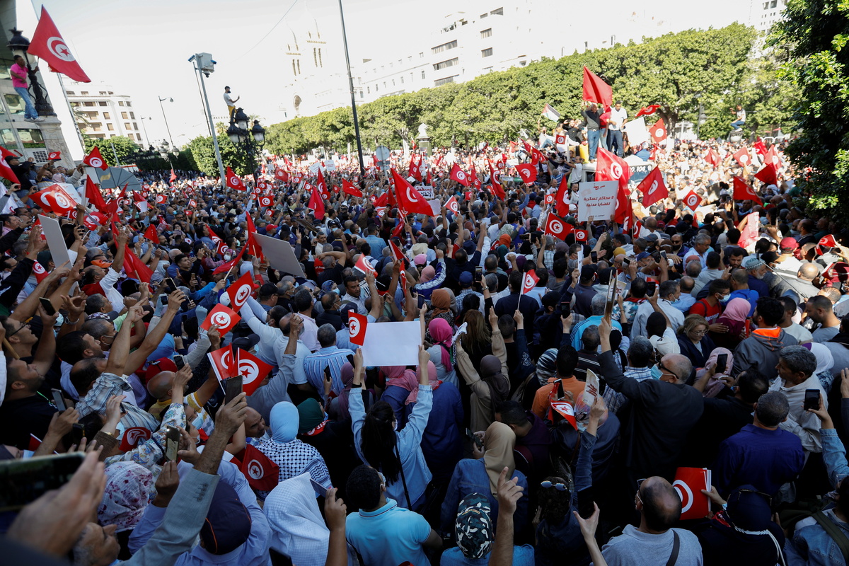A week after thousands demonstrated in support of Saied, the growing number of protesters on each side raises the possibility of Tunisia's political divisions spiralling into street confrontations between the two camps.