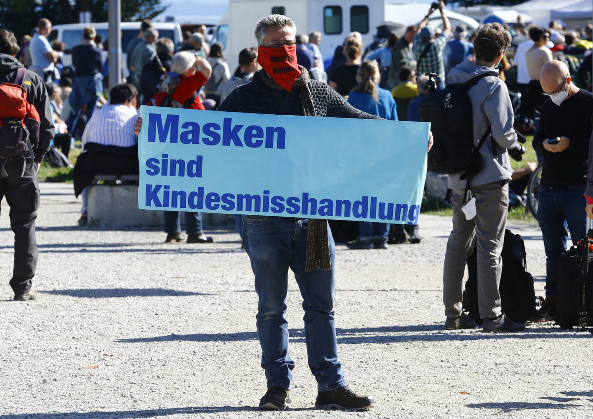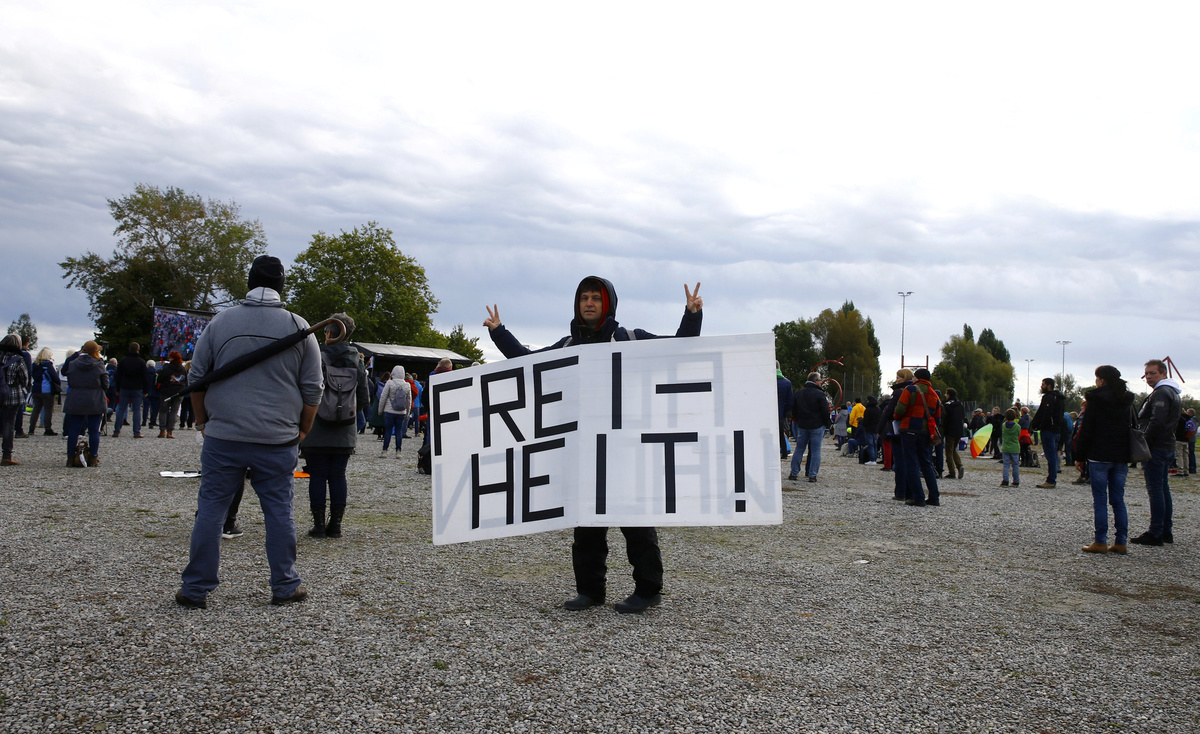 Thousands of demonstrators in southern Germany protested against coronavirus restrictions over the weekend, police said on Sunday, although organisers failed to mobilise enough people for a planned human chain around Lake Constance.