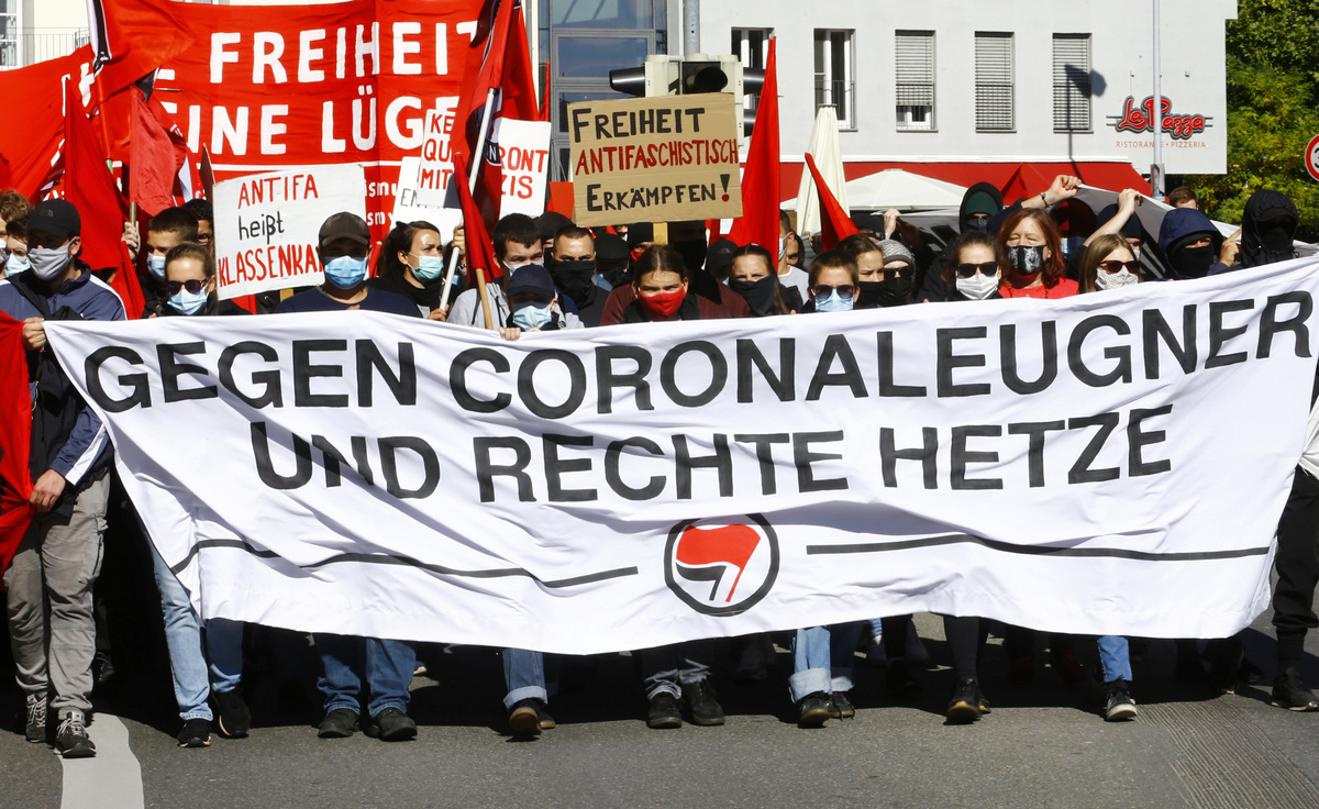 Local authorities had imposed restrictions such as respecting social distancing to avoid further infections. They also banned the use of Germany's imperial Reichsflagge, a symbol used by neo-Nazis and other far-right groups as an alternative to the forbidden swastika flag.