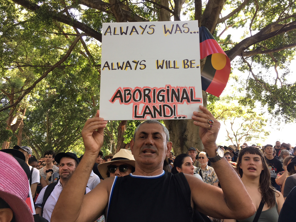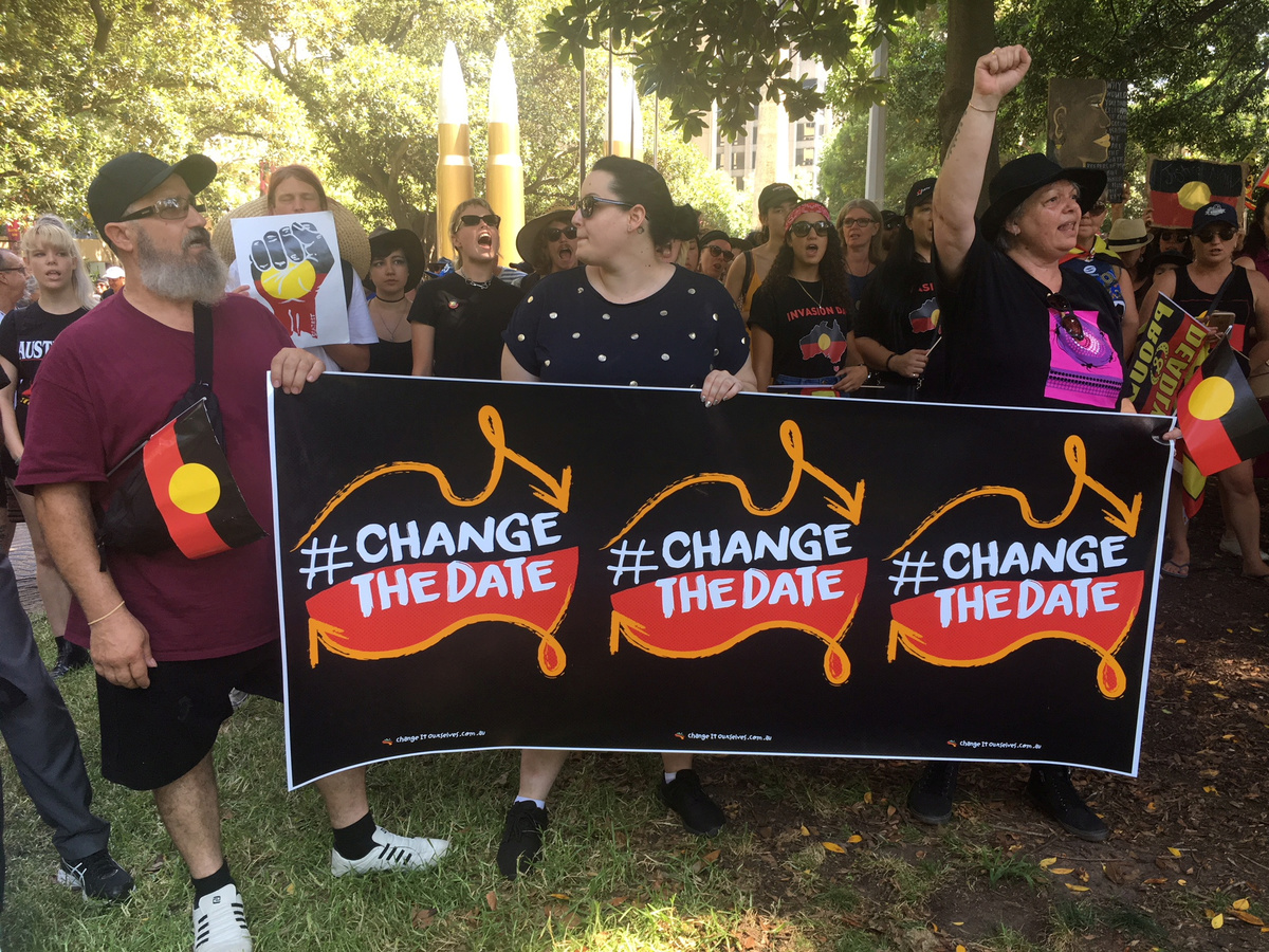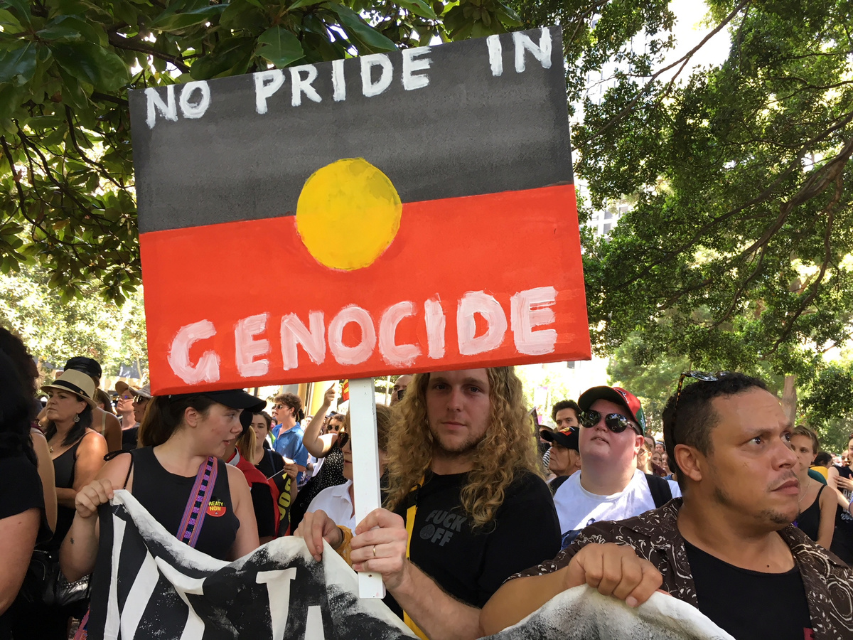 At a rally in Sydney stretched along more than half a dozen of city blocks, about 5,000 protesters chanted, "Always was and always will be aboriginal land" and "No pride in genocide." Protests attended by several thousand people took place in Melbourne, Canberra and other Australian cities.