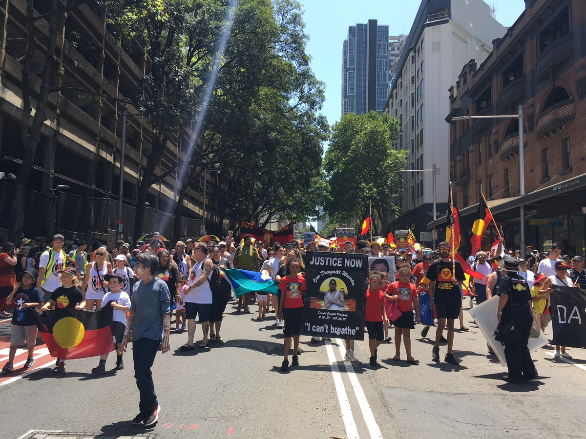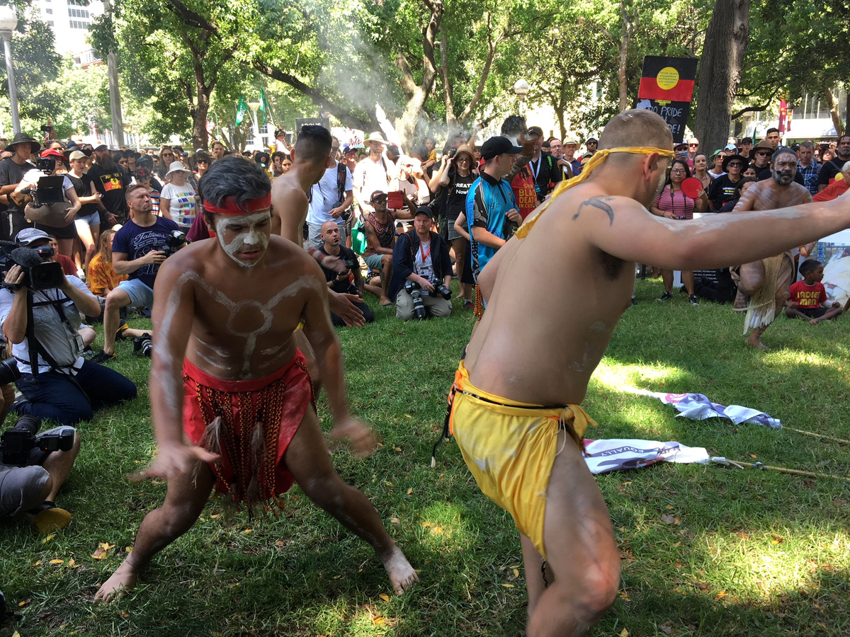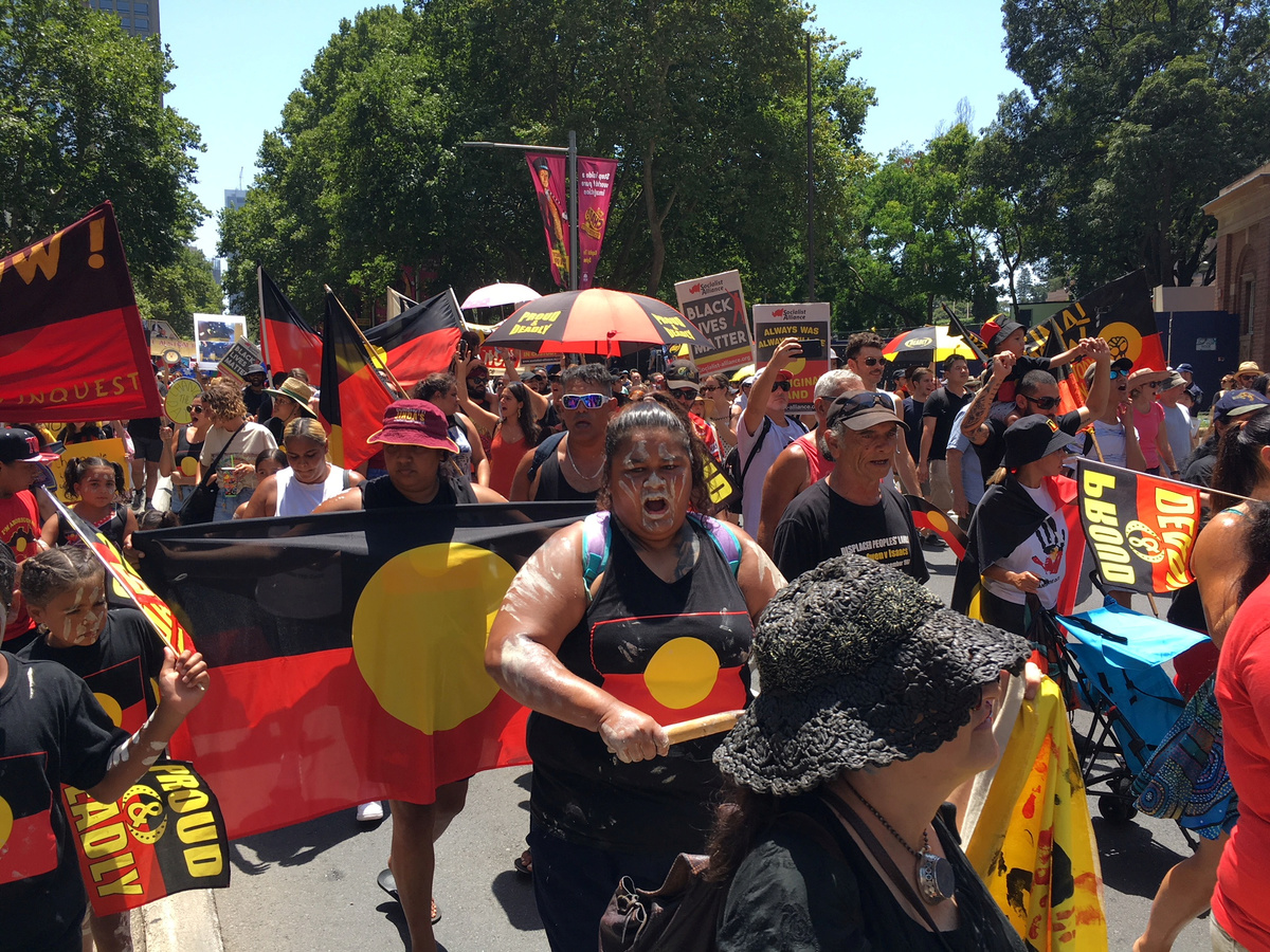 At a rally in Sydney stretched along more than half a dozen of city blocks, about 5,000 protesters chanted, "Always was and always will be aboriginal land" and "No pride in genocide." Protests attended by several thousand people took place in Melbourne, Canberra and other Australian cities.