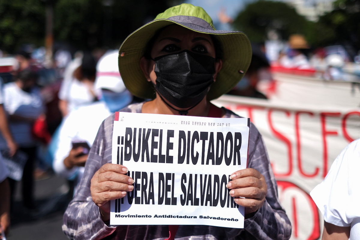 Sunday's protesters chanted slogans including "What does El Salvador want? Get rid of the dictator!" Near the capital's main square, some set fire to an effigy bearing the likeness of the 40-year-old president.