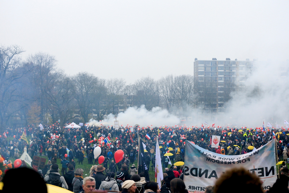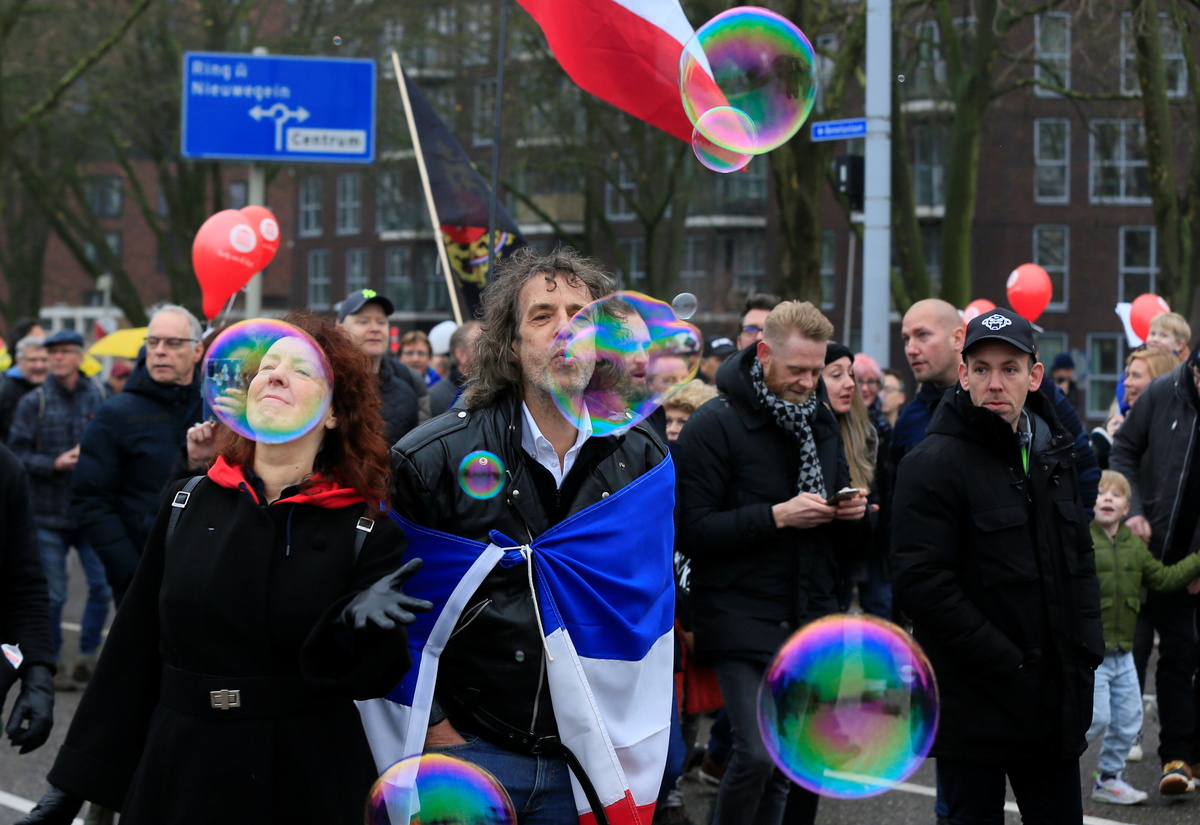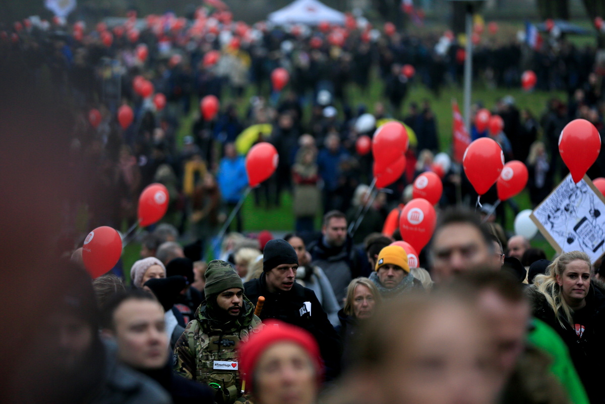 Many protesters denounced what they see as increasing pressure from the Dutch government to get vaccinated if they want to participate in regular society.