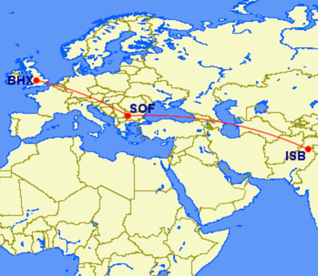 Another A330, belonging to GullivAir of Bulgaria, is flying from Islamabad via Sofia to Birmingham.