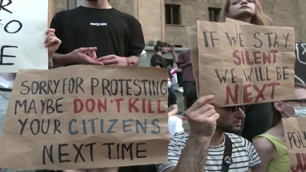 A large crowd of protesters that gathered in Tbilisi on Sunday demanded that authorities punish those responsible for the attack on journalists and urged Garibashvili to step down.