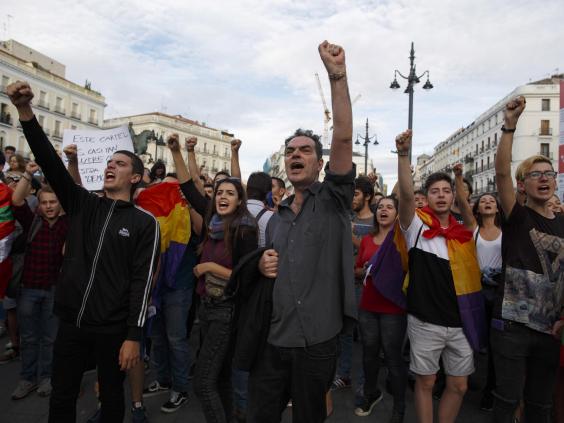 People can be heard shouting “Si! Si! Si!” (Yes! Yes! Yes!) in videos posted on social media in the city’s La Puerta del Sol square on Sunday– the day the Catalan independence referendum was held.