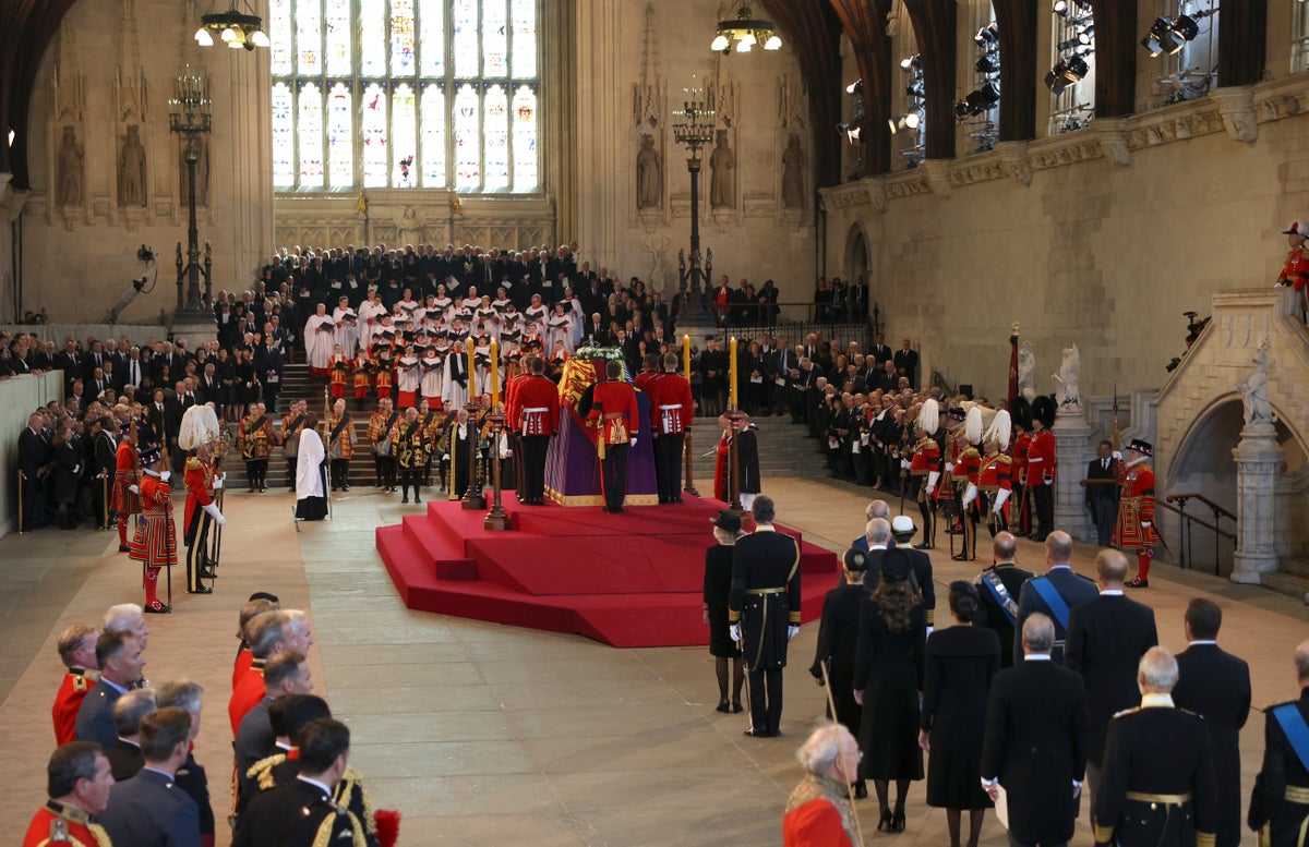 Lying in state will continue until 6.30am on Monday, after which the coffin will be taken in a grand military procession from the Palace of Westminster to Westminster Abbey for the state funeral.
