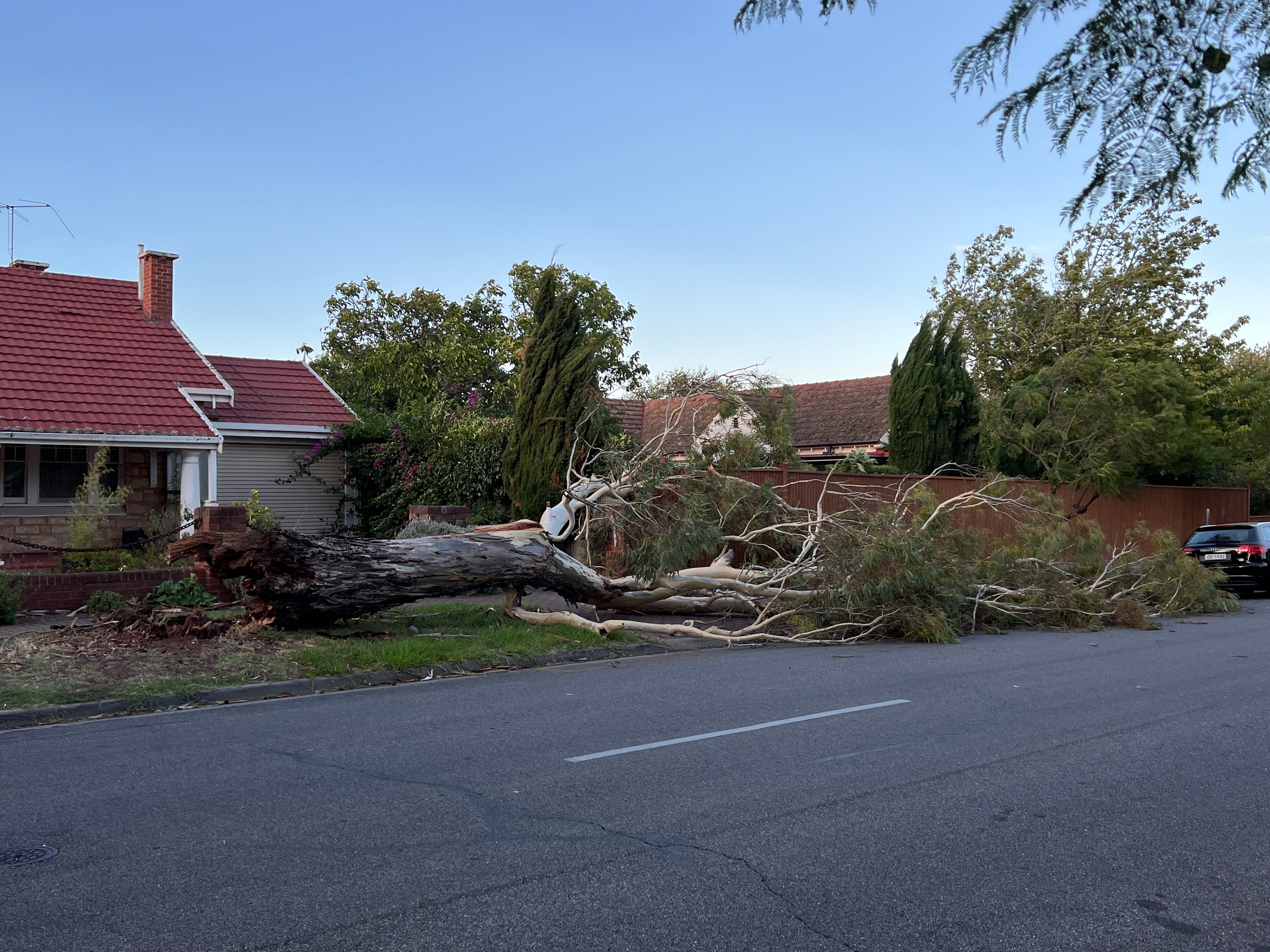 SA Power Networks said more than 30,000 customers — the majority of whom are yet to be reconnected — lost power across Adelaide, and the State Emergency Service has received more than 200 calls of fallen trees.