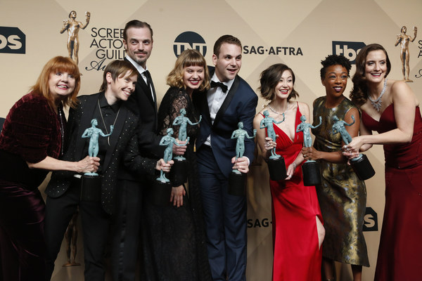 On the TV side, NBC's "This Is Us" won the award for ensemble in a drama series, with star Sterling K. Brown collecting the award for lead actor. HBO's comedy "Veep" also won two awards for its ensemble and star Julia Louis-Dreyfus, as did its limited series "Big Little Lies," which earned awards for Nicole Kidman and Alexander Skarsgard.