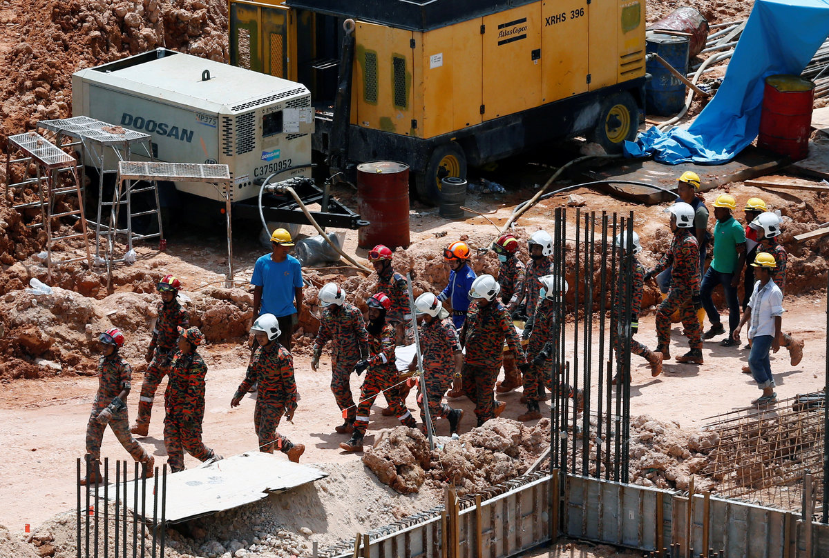 Those trapped were identified as foreign workers from Indonesia and Bangladesh, including one Rohingya and one Pakistani, fire officials said in an update of the search. One Malaysian, the construction site supervisor, was believed to be buried as well.