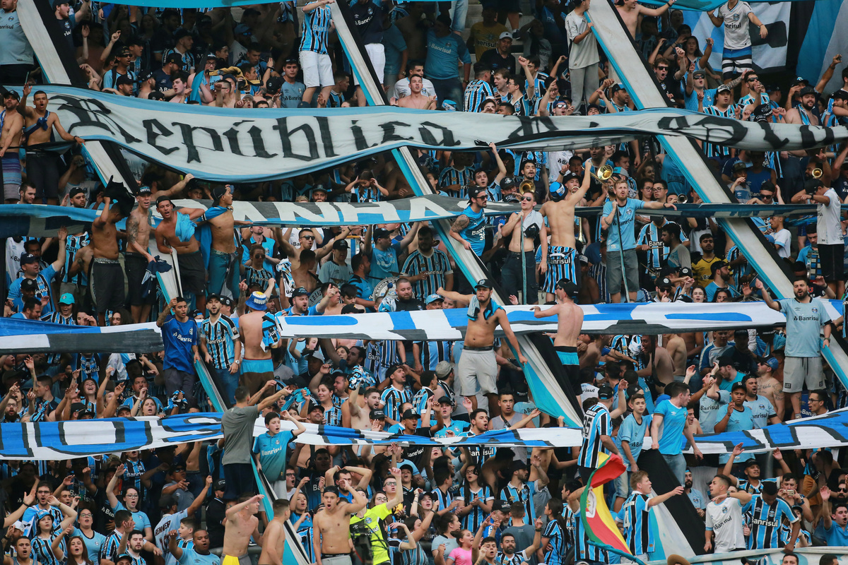 Soccer Football - Brasileiro Championship - Gremio v Goias - Arena do Gremio, Porto Alegre, Brazil - September 15, 2019 Gremio fans during the match REUTERS/Diego Vara Soccer Football - Brasileiro Championship - Gremio v Goias - Arena do Gremio, Porto Alegre, Brazil - September 15, 2019 Goias' Michael reacts during the match REUTERS/Diego Vara