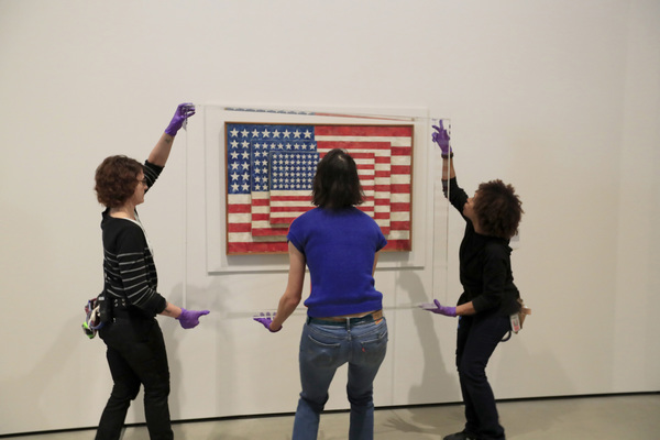 "To see all these masterworks together is just _ it's transcendent," said Broad director Joanne Heyler, who was overseeing the installation of "Three Flags" along with Matthew Skopek, a curator from the Whitney.