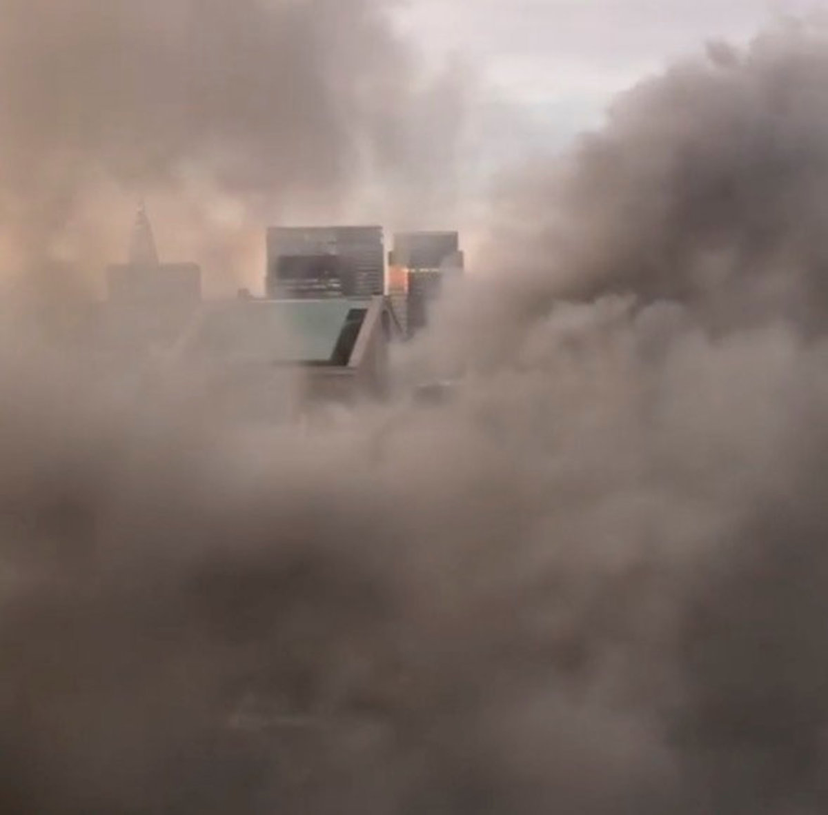 As firefighters battled the blaze, a plume of smoke spewed from the roof of the 68-story structure.