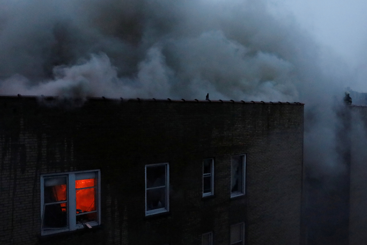 The Fire Department said the fire was not inside the building, but on top of it.