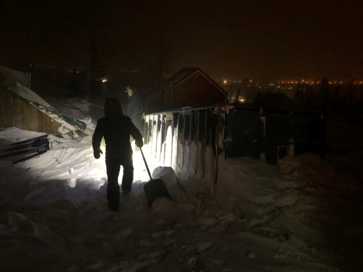 Video footage showed emergency services staff and volunteers battling high winds and freezing conditions throughout the night to dig out buildings buried under snow and ice.