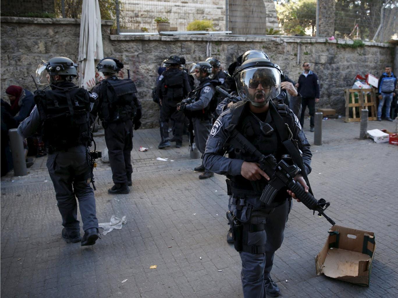 The officers stopped the three Palestinians at the busy plaza in East Jerusalem for an identity check after the reportedly aroused police suspicion, at which point all three assailants were discovered to be carrying concealed weapons.