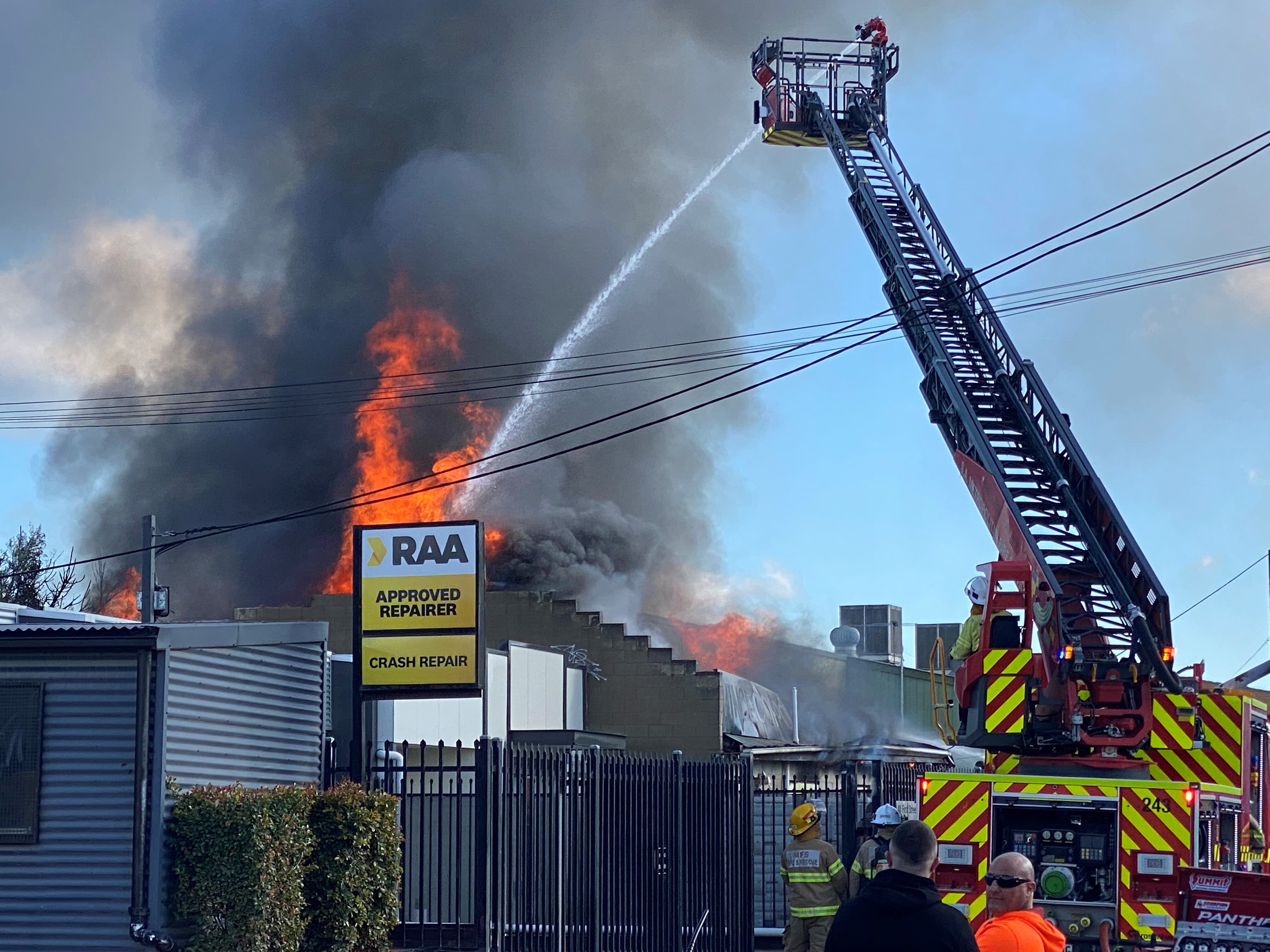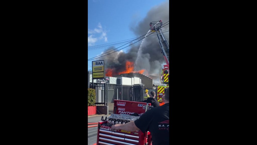 Neighbouring businesses raced to save their valuable equipment and cars as more than 60 firefighters battled the blaze.