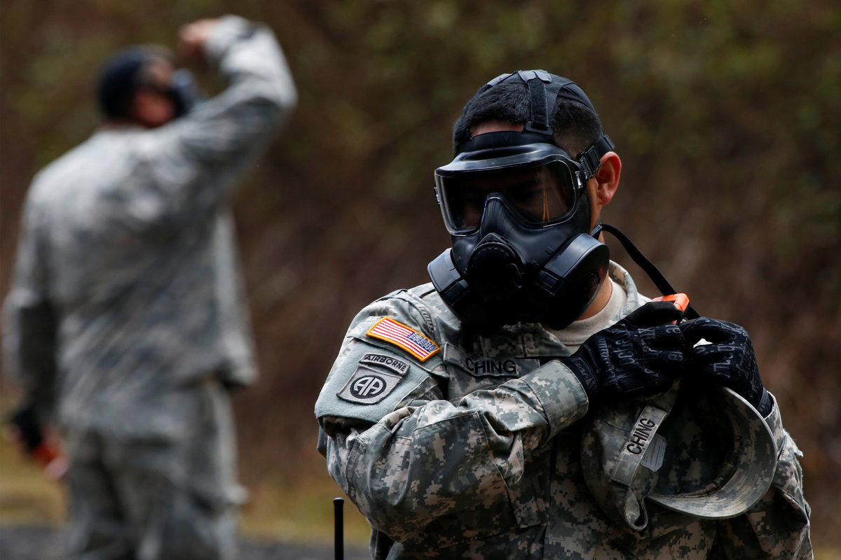 Soldiers from the Hawaii National Guard monitor sulfur dioxide gas levels near a lava flow in Leilani Estates during ongoing eruptions of the Kilauea Volcano in Hawaii, U.S., June 3, 2018. REUTERS/Terray Sylvester
