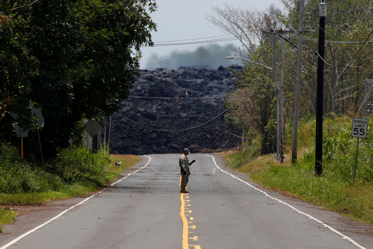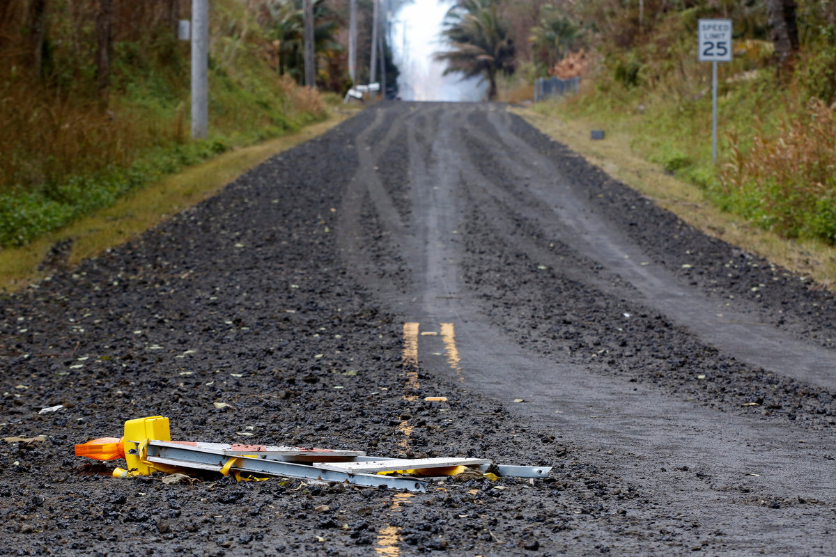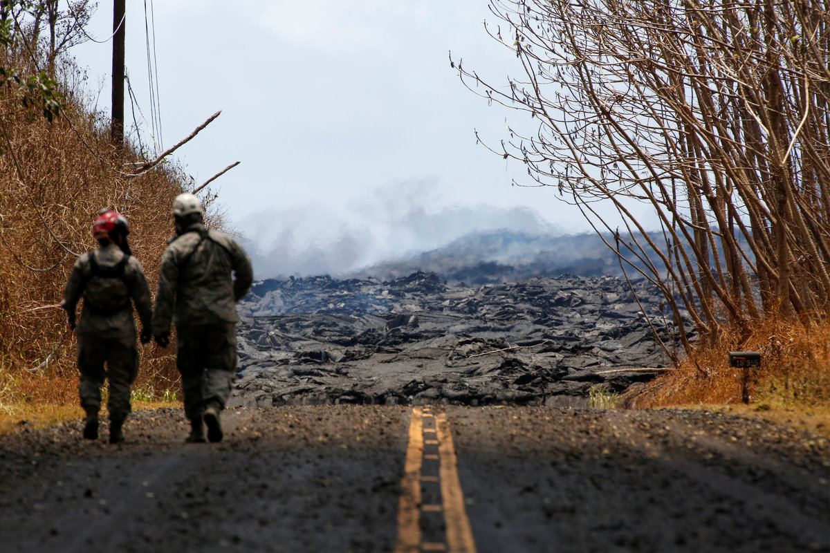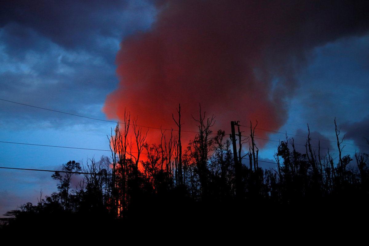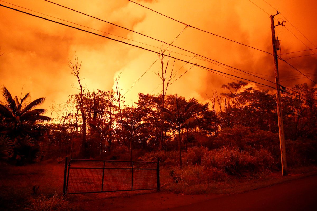 Lava illuminates the sky above Leilani Estates during ongoing eruptions of the Kilauea Volcano in Hawaii, U.S., June 3, 2018. REUTERS/Terray SylvesterFallen lava stones and threads of volcanic glass litter a road in Leilani Estates during ongoing eruptions of the Kilauea Volcano in Hawaii, U.S., June 3, 2018. REUTERS/Terray SylvesterSgt. Gavin Ching of the Hawaii National Guard monitors sulfur dioxide gas levels near a lava flow on Highway 132 in Pahoa during ongoing eruptions of the Kilauea Volcano in Hawaii, U.S., June 3, 2018. REUTERS/Terray SylvesterFallen lava stones and threads of volcanic glass litter a road in Leilani Estates during ongoing eruptions of the Kilauea Volcano in Hawaii, U.S., June 3, 2018. REUTERS/Terray SylvesterLava erupts from a fissure in Leilani Estates during ongoing eruptions of the Kilauea Volcano in Hawaii, U.S., June 3, 2018. REUTERS/Terray SylvesterFallen lava stones cover a road in Leilani Estates during ongoing eruptions of the Kilauea Volcano in Hawaii, U.S., June 3, 2018. REUTERS/Terray SylvesterFallen lava stones and threads of volcanic glass litter a road in Leilani Estates during ongoing eruptions of the Kilauea Volcano in Hawaii, U.S., June 3, 2018. REUTERS/Terray SylvesterLava erupts behind a home in Leilani Estates during ongoing eruptions of the Kilauea Volcano in Hawaii, U.S., June 3, 2018. REUTERS/Terray SylvesterFallen lava stones cover a road in Leilani Estates during ongoing eruptions of the Kilauea Volcano in Hawaii, U.S., June 3, 2018. REUTERS/Terray SylvesterLava covers a road in Pahoa during ongoing eruptions of the Kilauea Volcano in Hawaii, U.S., June 3, 2018. REUTERS/Terray SylvesterSgt. Gavin Ching (R) of the Hawaii National Guard monitors sulfur dioxide gas levels in Leilani Estates during ongoing eruptions of the Kilauea Volcano in Hawaii, U.S., June 3, 2018. REUTERS/Terray SylvesterDarryl Sumiki, 52, of Hilo, watches as lava lights up the sky above Pahoa during ongoing eruptions of the Kilauea Volcano in Hawaii, U.S., June 2, 2018. REUTERS/Terray Sylvester