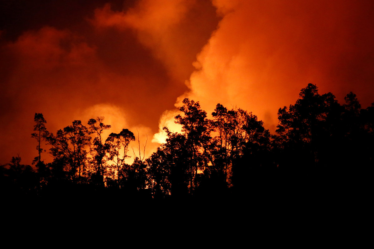 Lava illuminates the sky above Leilani Estates during ongoing eruptions of the Kilauea Volcano in Hawaii, U.S., June 3, 2018. REUTERS/Terray Sylvester