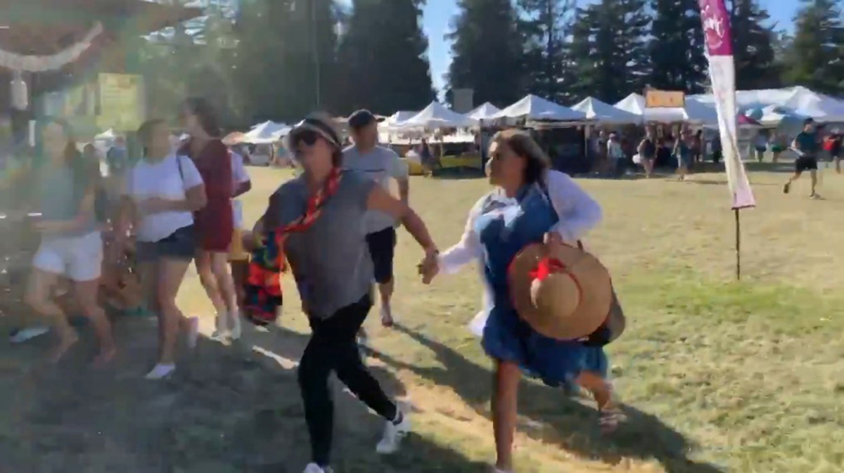Cellphone videos of the attack showed people fleeing past tents in panic as rapid-fire gunshots were heard.