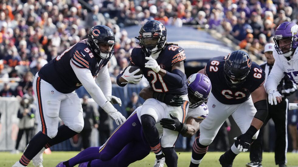 The Bears’ defense played by far its best game of the season, allowing 220 yards. That was a season low for the Vikings, who were without star receiver Justin Jefferson. The Bears entered Sunday allowing an average of 384.2 yards, the fourth-most in the NFL. They also allowed the Vikings to convert only two of their 13 third downs.