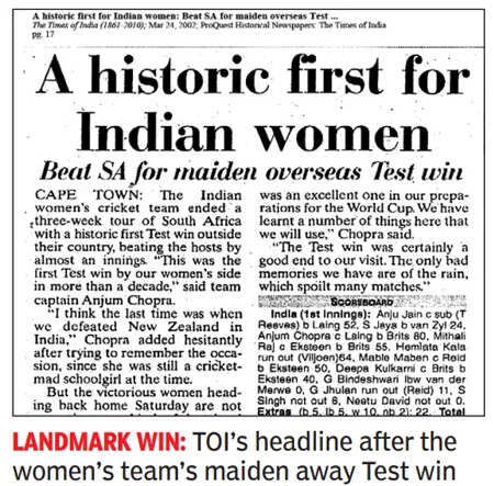 It was a historic away win; the men’s team won their first Test in South Africa only in 2006. But as captain Chopra said after the win, “There will probably be very little or no media publicity about our achievement.”