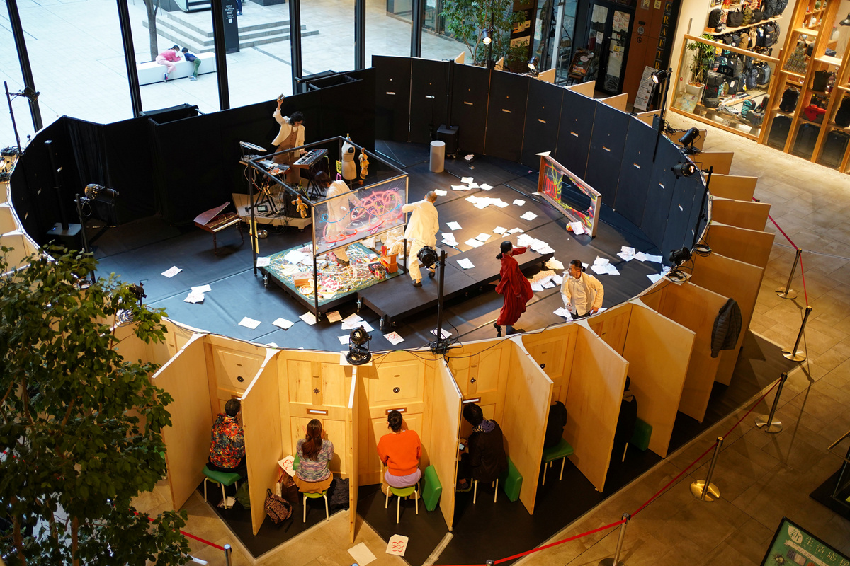 "We intentionally created small holes and slots resembling mailbox slots," said Nobuyoshi Asai, the theatre's artistic director and choreographer, explaining how limiting the scope of viewing allows the audience to become more absorbed in the performance.