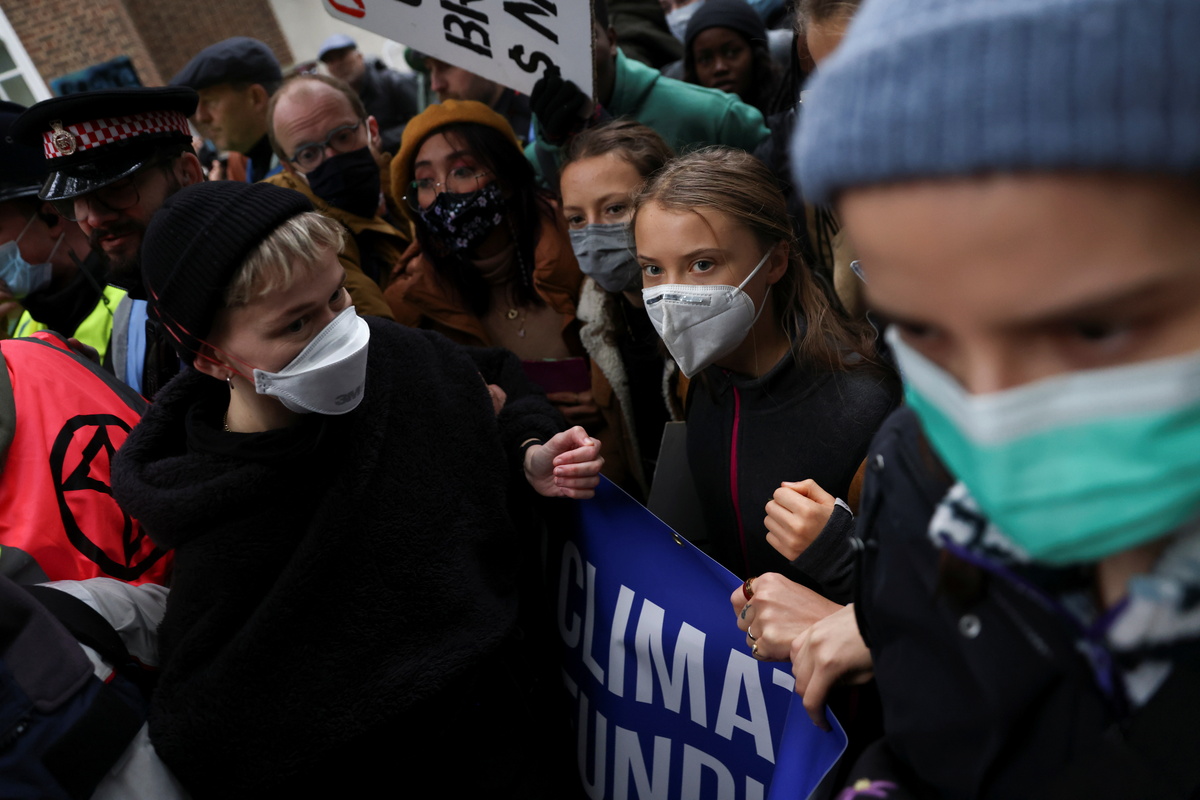 Teenage climate activist Greta Thunberg joined protesters at a noisy demonstration outside the London offices of Standard Chartered bank on Friday to demand that financial institutions stop funding the extraction of fossil fuels.