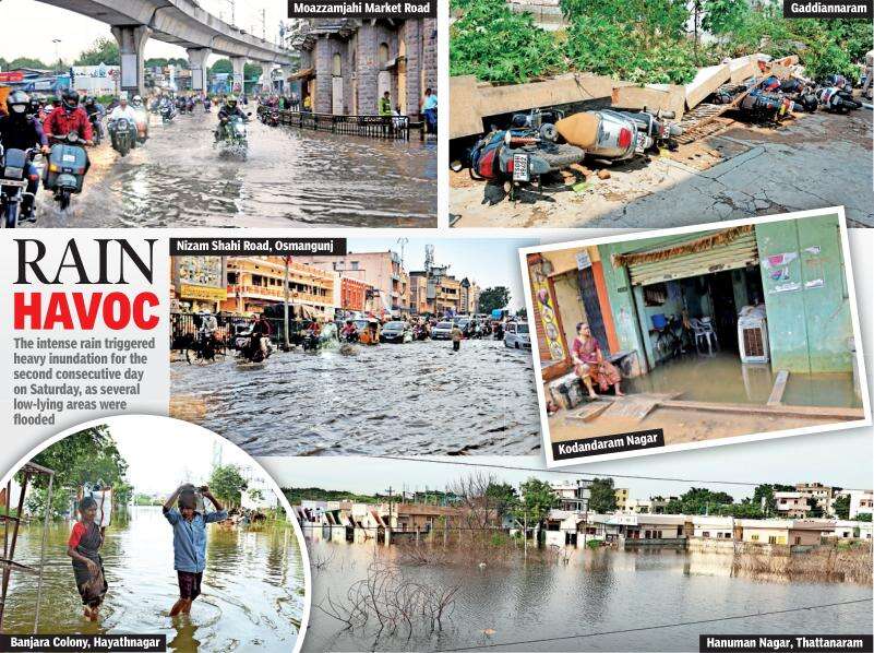 HYDERABAD: Even before the city recovered from the massive inundation and a flood-like situation that threw life out of gear on Friday evening, heavy rain accompanied by loud claps of thunder and blinding bolts of lightning was witnessed in the city on Saturday.