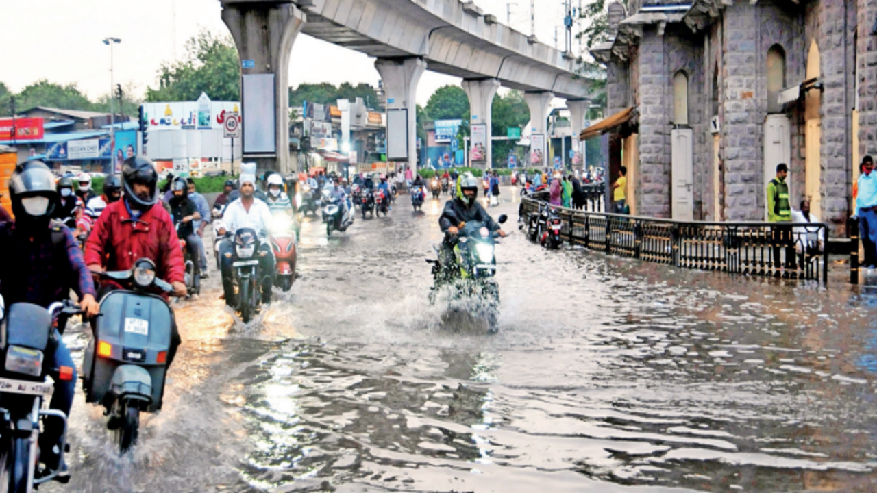 The cloudburst which was first reported in LB Nagar zone around 5 pm spread to almost all the other areas of the city within the next 30 minutes. The intense rain triggered heavy inundation for the second consecutive day, as several low-lying regions across the city came under sheets of rainwater, with the GHMC building near Tank Bund recording 95.5 mm rainfall around 8.30 pm.