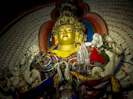 That conversation has now borne fruit. Today, at the Wellcome Collection in central London, an exhibition entitled "Tibet's Secret Temple: Body, Mind and Meditation in Tantric Buddhism" opens, running until February. High-quality, full-size digital photographs of the murals of the Lukhang are complemented by a film of life and devotion in Lhasa today and a quantity of objects, some very rare, borrowed from museums including Pitt-Rivers in the USA and the Musée Guimet in Paris. The exhibition culminates in a virtual recreation of the palace's top-floor meditation room.