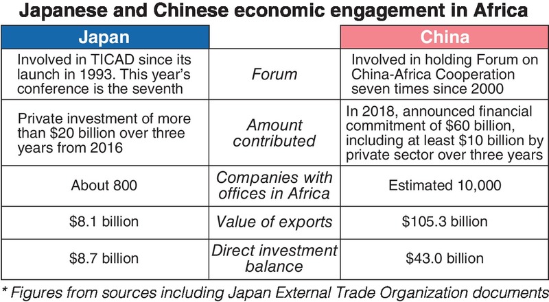 China's presence in the background is one reason for this. Under its massive Belt and Road Initiative to create a China-centered economic zone, Beijing is making inroads into many African countries through huge infrastructure and other projects. Abe appears to have decided "Japan can't beat China in terms of quantity," a source close to the prime minister told The Yomuiri Shimbun.