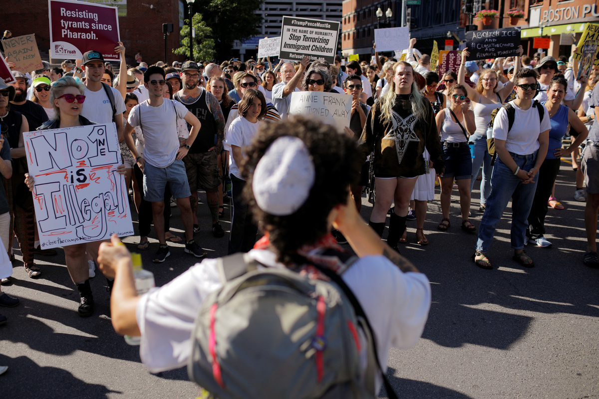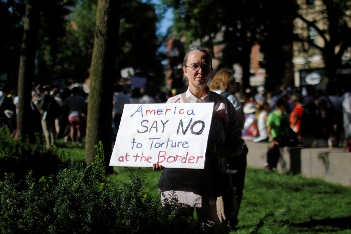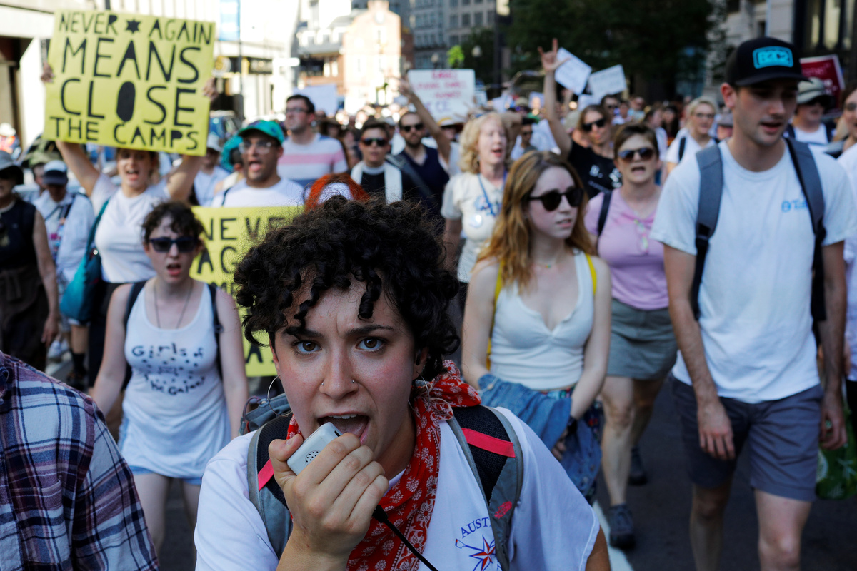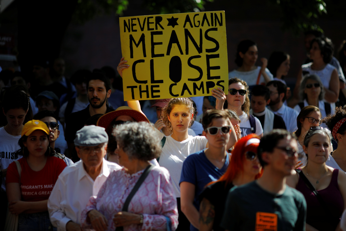 In New York, several hundred people gathered on Tuesday to demonstrate against the Trump administration's treatment of migrants, part of a planned nationwide day of protests by rights groups targeting members of the U.S. Congress.
