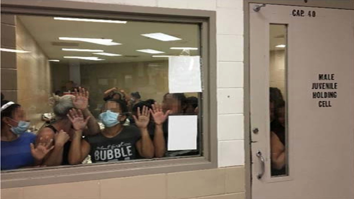 Migrants banged on cell windows and shouted when investigators visited. Most single adults had not had a shower despite several being held as long as a month. One photo showed a man in a cell with 88 men, that was built to hold 41, holding a message reading: "Help 40 Day(s) Here."