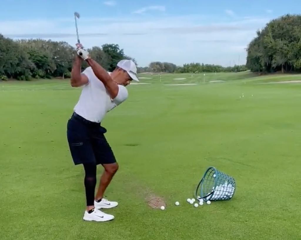 Woods posted a two-second clip on his official Twitter account on Sunday showing him hitting balls on a practice range at an unidentified location.