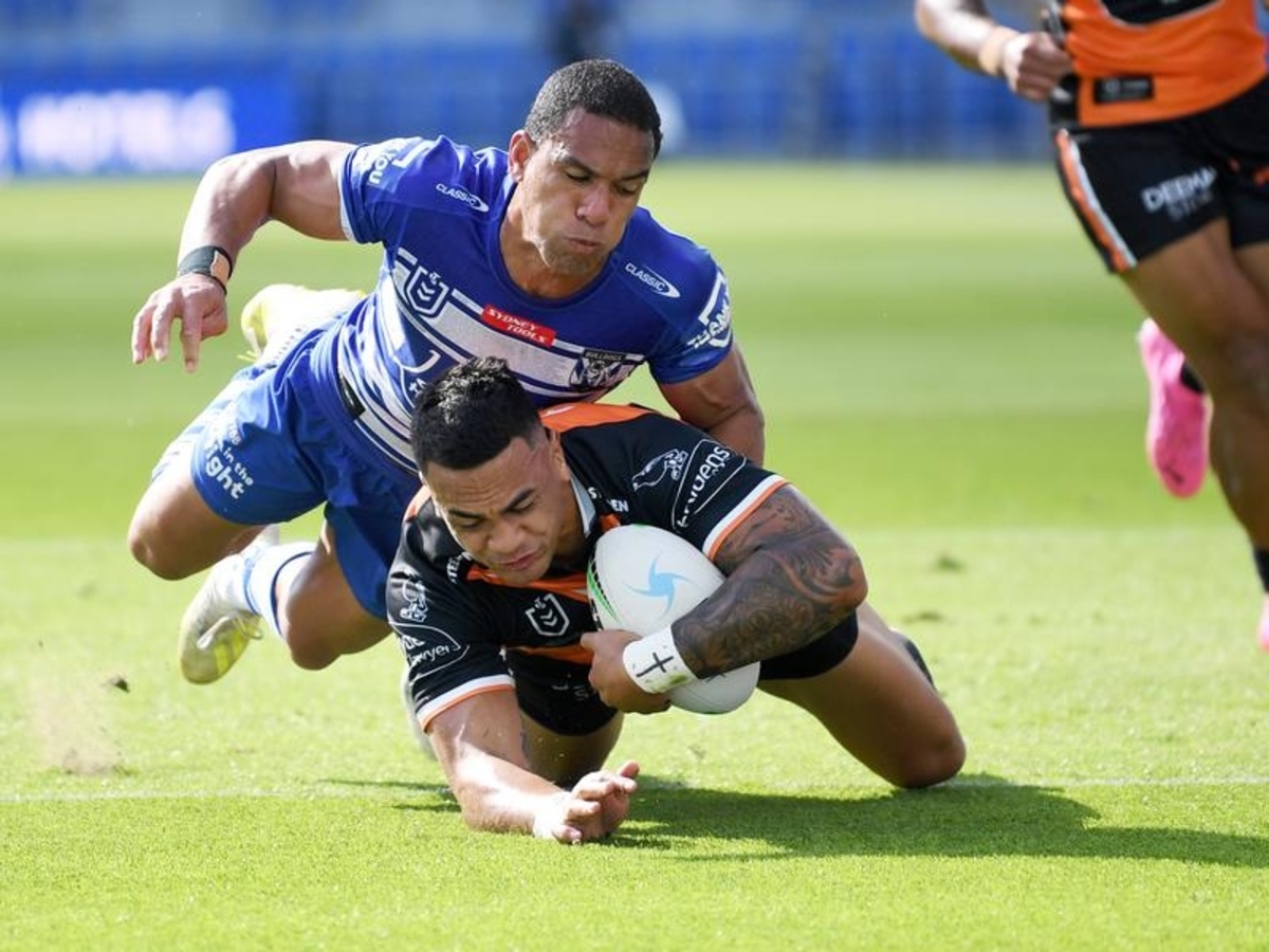 When Tommy Talau soared over a static Bulldogs defensive line in the 48th minute to haul in an Adam Doueihi kick, the Tigers were out to a 26-12 margin.