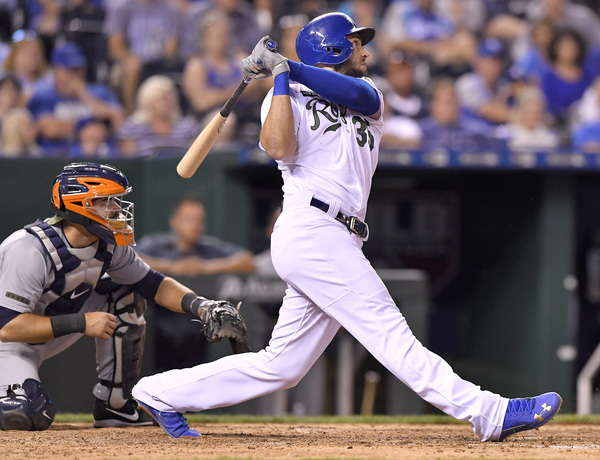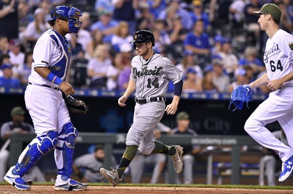 On Minor's first pitch, Victor Martinez doubled down the third base line to tie the game. Then, J.D. Martinez hit his eighth home run of the season, a three-run bomb into the left-field seats. The six-run fifth inning was a surprise only in that the Tigers had been swinging the bats so sluggishly as of late: After a good night's sleep arriving in Kansas City, the team appeared loose and fresh before Monday's game.