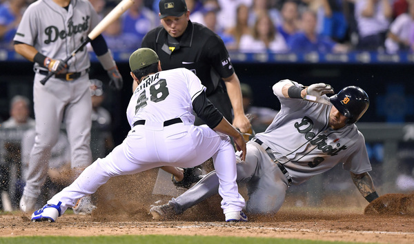 In the eighth, down two runs, they scored four runs on four hits and two walks. The biggest: Alex Presley singling to tie the game and after Nick Castellanos scored the go-ahead run on a wild pitch, Miguel Cabrera singled home two more. They beat the Royals, 10-7, Monday at Kauffman Stadium.